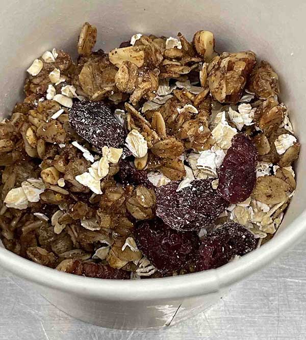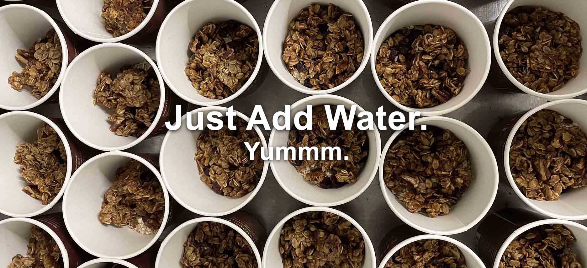 We start by baking rolled oats with heart healthy nuts, fruit, natural sweeteners and flavorful spices into toasted clusters. And then combine these delicious clusters with quick oats into single serve cups.